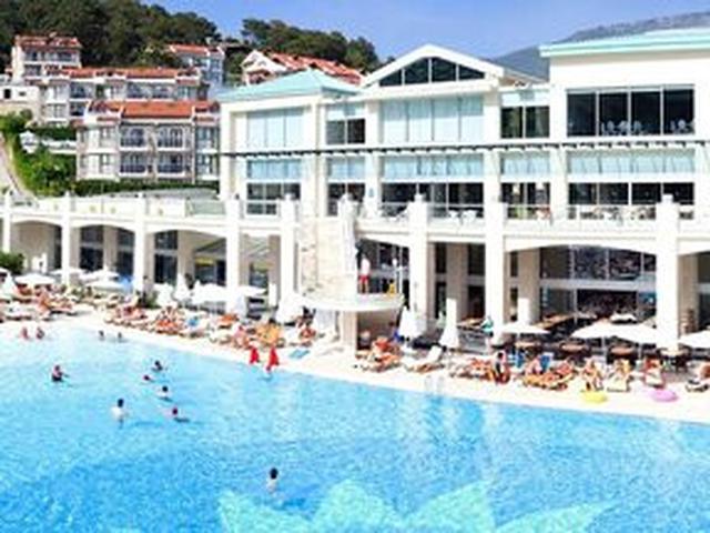 Lage: In Hanglage, mit Panoramablick auf die Bucht von Ölüdeniz. Zum Strand (Sand/Kies) ca. 2,5 km (Shuttle, 2x tägl. inkl.).