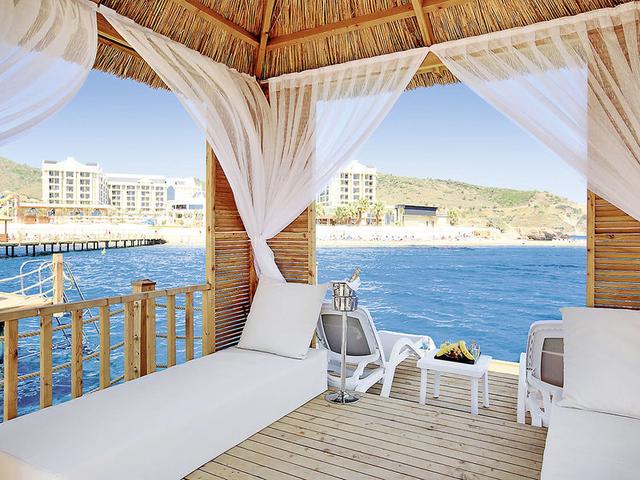 Ausstattung: Hotel der Luxusklasse. In Meeresrichtung angelegte Swimmingpoollandschaft, separater Rutschenpool, Sonnenterrasse, Liegen, Schirme (Cabañas an Strand/Pool gegen Gebühr), Poolbar. Empfangshalle, Rezeption, Lobbybar, Sitzecken, WLAN, Hauptrestaurant mit Terrasse, 6 À-la-carte-Restaurants (türkisch, mexikanisch, Meeresfrüchte, italienisch, asiatisch, Sushi), Irish Pub, Kino, Sportsbar, Nachtclub, Patisserie, Souvenirshop, Minimarkt, Friseur. Landeskategorie: 5 Sterne, 470 Zimmer, 6 Etagen.