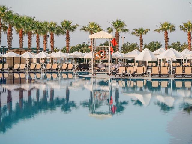 Allgemeine Beschreibung:Das Hotel Calimera Serra Palace liegt ca. 100 m vom privaten Sandstrand entfernt. Am Strand sind Sonnenschirme und Sonnenliegen kostenlos verfügbar. Die Stadt Manavgat ist ca. 14 km entfernt (Alanya ca. 45 km, Antalya ca. 85 km). Einkaufsmöglichkeiten liegen ca. 3 km vom Hotel. Folgende Sehenswürdigkeiten sind vom Hotel aus erreichbar: Aspendos (ca. 53 km) und Perge (ca. 90 km). Zur ärztlichen Versorgung im Notfall befindet sich ein Krankenhaus in etwa 14 km Entfernung. Der Flughafen (ADB) ist in unmittelbarer Nähe zu finden. Ein weiterer Flughafen (AYT) liegt in etwa 92 km Entfernung. Ausstattung:Die Clubanlage verfügt über 386 Zimmer. Sie bietet ihren Gästen eine 24h geöffnete Rezeption (Check In ab 14:00 Uhr, Check out bis 12:00 Uhr), eine Lobby mit Bar, eine Klimaanlage, einen Friseur, einen Minimarkt, weitere Shops sowie eine Diskothek. Für das leibliche Wohl sorgt eine Snackbar. WLAN steht den Hotelgästen kostenlos zur Verfügung. Die Zimmerreinigung ist kostenlos. Wäsche-Service und medizinischer Service sind gegen Gebühr. Schwimmbad:Zum Außenbereich des Hotels gehören 2 Frischwasser-Pools mit einem separaten Kinderbecken sowie eine Wasserrutsche. Hier stehen Sonnenschirme und Sonnenliegen kostenlos zur Verfügung. Eine Bar am Pool bietet den Gästen erfrischende Getränke. Verpflegung:Frühstück (von 07:00 - 10:00 Uhr) vom Buffet. All Inclusive: Frühstück, Mittag- und Abendessen. Frühstück, Mittag- und Abendessen dabei nur in ausgewählten Restaurants. Softdrinks, Kaffee/Tee, Bier, Wein und nationale alkoholische Getränke zu bestimmten Service-Zeiten. Kuchen/Gebäck (16:00 - 17:00 Uhr), Spätaufsteher-Frühstück (10:00 - 11:00 Uhr), kleine Snacks (12:30 - 15:00 Uhr) und Mitternachtssnacks (23:30 - 00:30 Uhr). Sport/Freizeit:Sport- und Unterhaltungsangebote: Aerobic, Fitness, Tischtennis (ggf. geg. Gebühr), Tennis (kostenlos), Minigolf, Billard (ggf. geg. Gebühr) und Beachvolleyball. Wellnessangebote: Spa-Bereich gegen Gebühr. Hamam und Massagen ggfls. gegen Gebühr. Kinderspielplatz. Kinderbetreuung: Mini-Club für Kinder (von 4 - 12 Jahren) und Babysitting (gegen Gebühr). Spieleraum. Zusätzliche Informationen:Für bestimmte Einrichtungen oder Aktivitäten können zusätzliche Gebühren anfallen. Einige Dienstleistungen hängen von der Jahreszeit und den lokalen klimatischen Bedingungen ab. Servicesprachen: englisch, deutsch, französisch, russisch und türkisch. Kreditkarten: Visa und Euro/MasterCard. Einige Serviceleistungen oder Angebote können wegen der neuen COVID19 Gesundheitsprotokolle eventuell nur im eingeschränkten Umfang nutzbar oder ganz geschlossen sein. Änderungen können ohne vorherige Information appliziert werden.