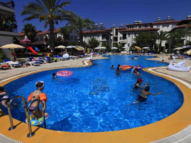 Ausstattung: Großzügige Gartenanlage mit 2 Swimmingpools, sep. Rutschenpool (stdw.), Sonnenterrasse, Liegen und Schirmen am Pool und am Strand. Poolbar. Rezeption, WLAN im gesamten Hotel inklusive, Hauptrestaurant, Bars, Minimarkt, Friseur. Landeskategorie: 3 Sterne, 200 Zimmer, 3 Etagen.