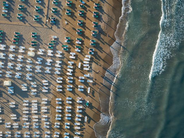 - Strand: Sand, Kies, öffentlich, Liegen, Sonnenschirme