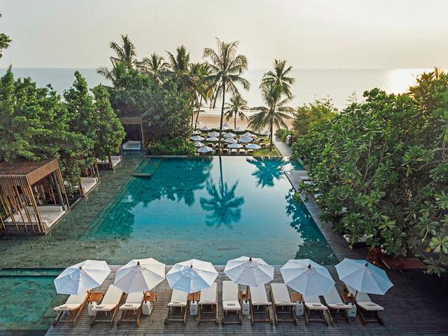 Oh là là! First Class, direkt am weißen Sandstrand von Hua Hin, super stylisch und nur 59 Suiten, dafür aber alle mit Privatpool – das ist Urlaub, wie man ihn sich mal gönnen sollte! Die Lage des Top-Hotels vereint das Beste von beidem: mitten in der Stadt, aber absolut ruhig.