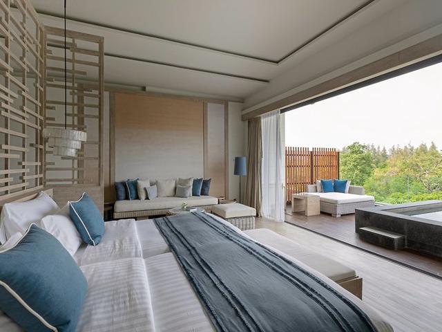 - 71-80 qm, Suite, Nichtraucher, Schreibtisch, Couch, Badewanne, separates WC, Bademantel, Badeslipper, Haartrockner, Parkett, Klimaanlage, individuell regulierbar, Minibar kostenpflichtig, Safe, TV (Kabel-TV, landestypisches Programm, Flachbildschirm), Bluetooth-Lautsprecher, Balkon (möbliert), Privatpool, 24-h-Zimmerservice
