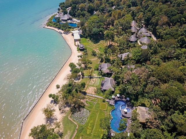 Wie mit der üppigen Natur verwachsen fügen sich die Bungalows in ihre ruhige Umgebung ein. Sensationell: der Blick aus dem fantastischen Infinity-Pool auf die Kalksteinfelsen der Phang-Nga-Bucht!