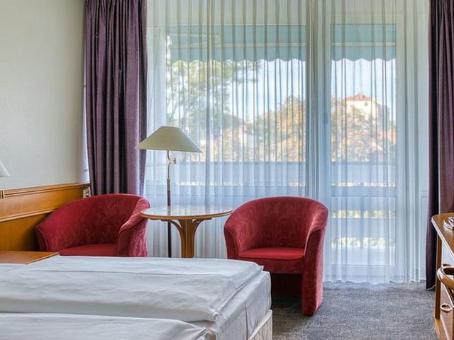 203 klimatisierte Zimmer (ca. 25 qm) und 7 Appartements mit Bad, WC, Föhn, Telefon, TV, Minibar, Safe und Balkon. Superior mit gehobener Ausstattung 4.-7. Etage zur Ostseite mit Park- oder Seeblick, Kaffee/Tee-Set. EZ sind DZ zur Alleinnutzung. Auch allergiker-, behindertenfreundliche und Zimmer mit Verbindungstür. Lifte.